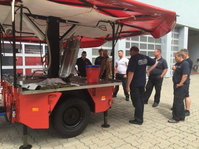 Nun ist es gelungen, eine Partnerschaft mit einem Hersteller aufzubauen, der bereits seit 1920 Feldküchen produziert.  Zur Verfügung stehen Einheiten, die für die Verpflegung von 50 bis 450 Personen ausreichen.