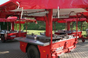 Wir achten dabei auf alle gesetzlichen Vorschriften, so z.B. tragen die Gasbrenner das vorgeschriebene CE- Zeichen, die Gasanlage ist geprüft, die Kessel nach der Druckprüfungsverordnung (achten Sie dabei darauf, dass die Druckprüfungsverordnung u.a. eine Sichtkontrolle vorschreibt! Zur Sichtkontrolle ist der Ausbau der doppelwandigen Kessel unerlässlich) abgenommen und der gesamte Anhänger der DEKRA vorgestellt.