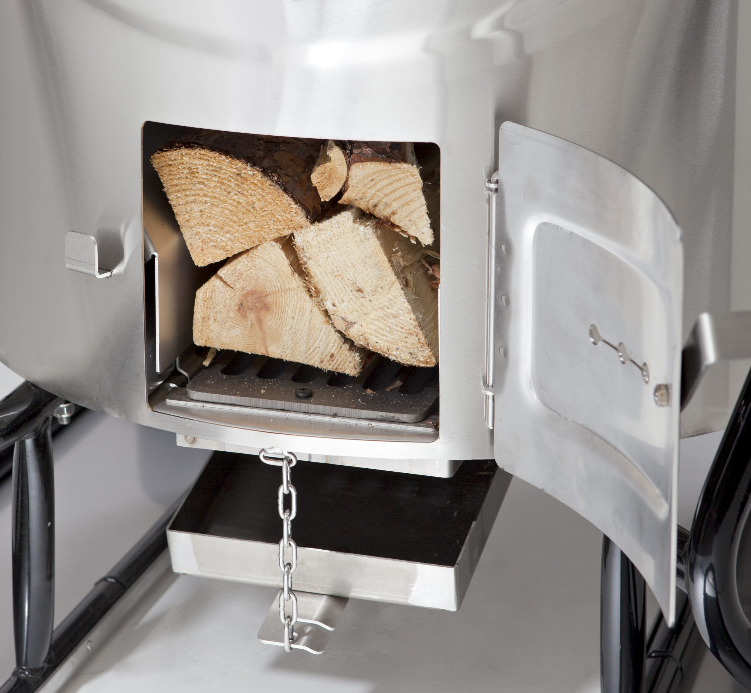 The cooker is available equipped for LPG (gas) or Diesel, while both versions can also be run with solid fuel (wood).