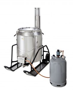 Liquid fuel is supplied from a Jerry-can. Diesel version includes a compact oil burner and control panel with thermostat. Power generator is needed with Diesel version.