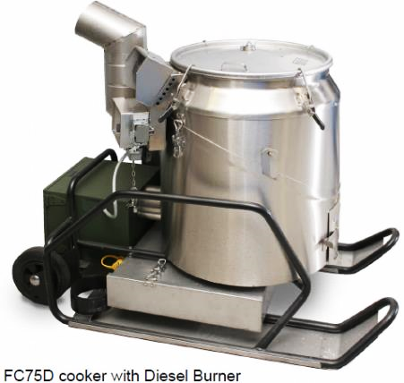 Der FC75 ist ein leichter und robuster Feldkocher, der mit einem doppelwandigen 75-Liter-Kochkessel ausgestattet ist, der das bewährte Wärmeübertragungssystem nutzt.